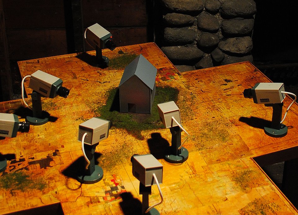 Type art battle, ypsilanti, mi, llic, neighborhood watch, big brother, government surveillance, sculpture, table, security camera, paranoia