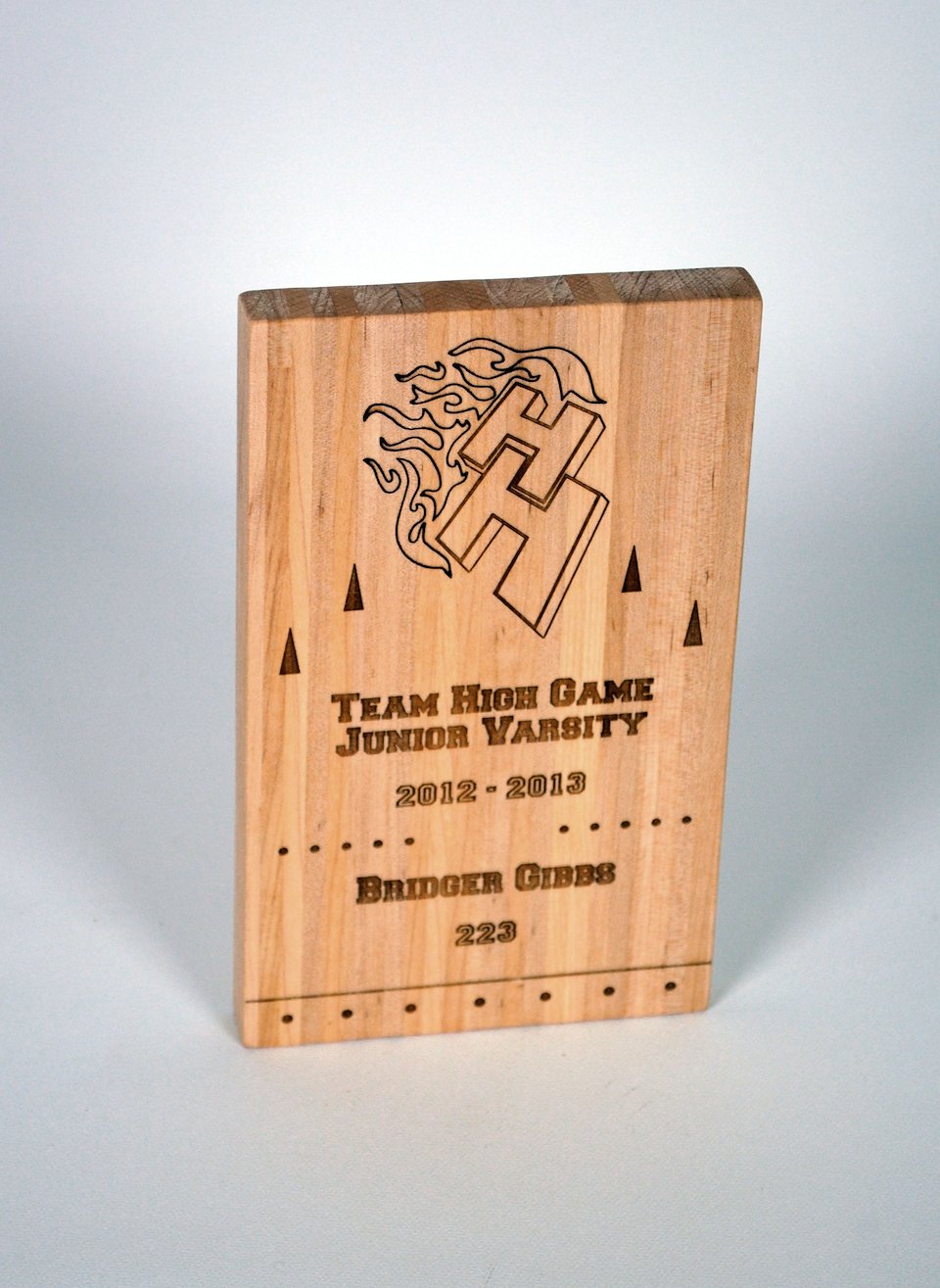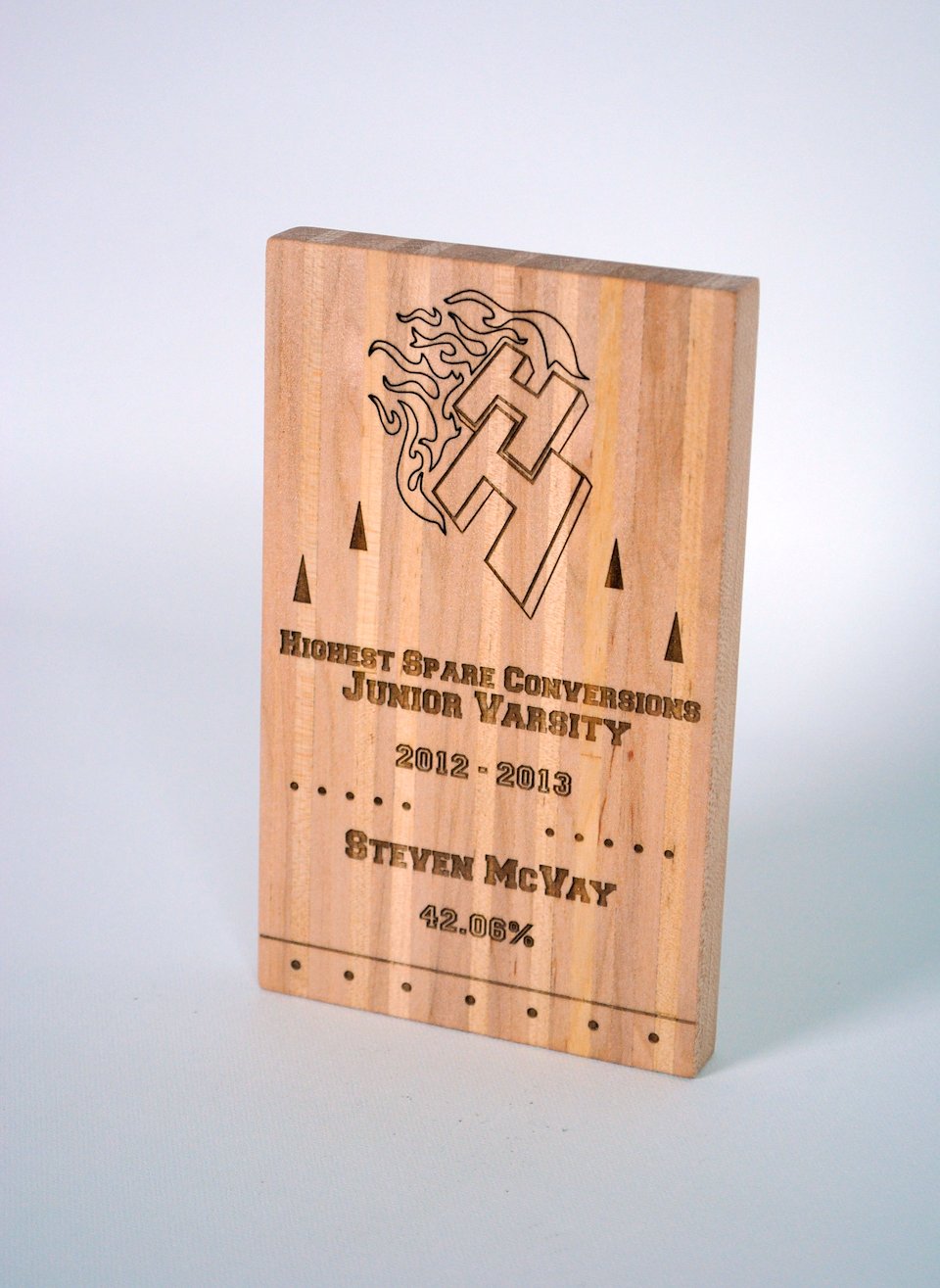 Tier 3 trophy | laminated maple plaque with laser engraving | 2013