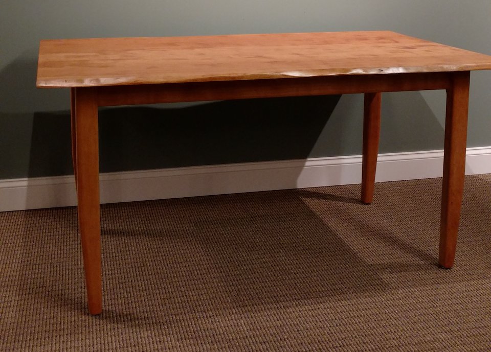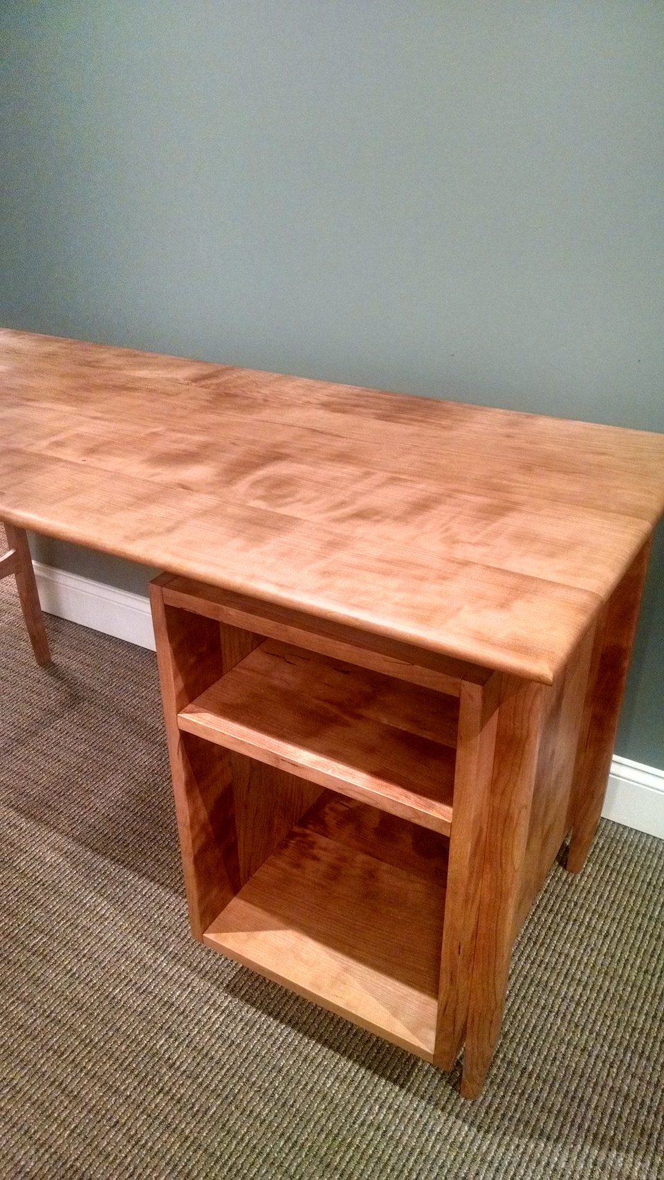 We did two desks and two tables for Money Source Financial from solid cherry sourced from the client’s own back yard. Per the client’s request, we made one of the tables with two live edges, the other (not pictured) was left rectangular to mimic the tops of the desks.