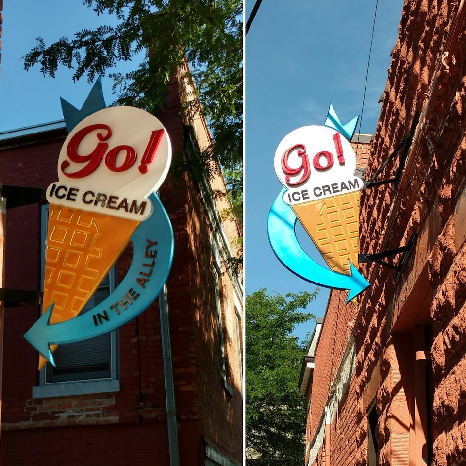 When owner, Rob Hess, approached us about making signs for his soon-to-be-opening ice cream shop in a long unused space in the heart of Ypsilanti, MI… well, we were more than thrilled.