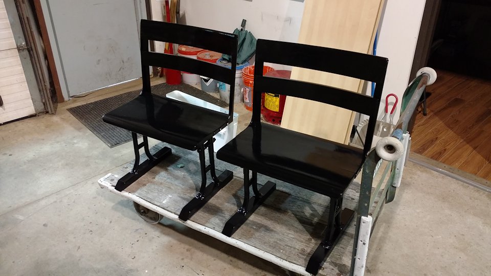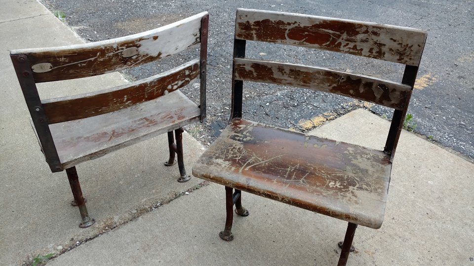 You’ll also see before and after photos of the old Detroit Public School chairs we restored and modified for seating.